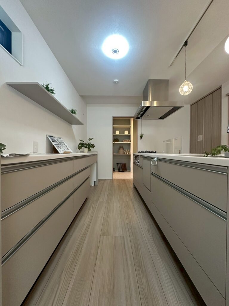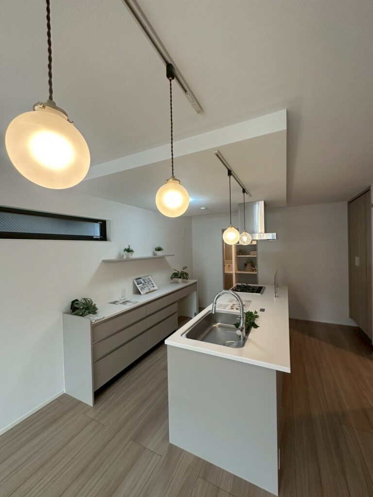 作業スペースにもなる、キッチンのカップボードもあるので収納や映えは抜群ですね。